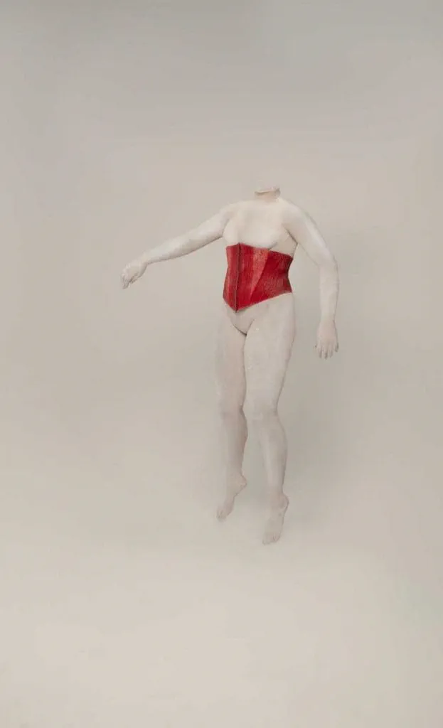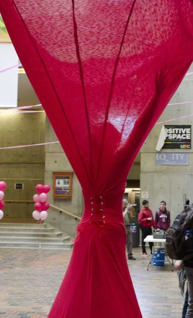 Hampton created a wearable sculpture installation (left) and a corset made of candy (right) while studying at Sheridan